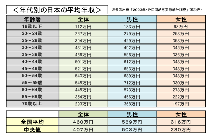 最初に「入るお金」の話・・・「世代別年収」の確認