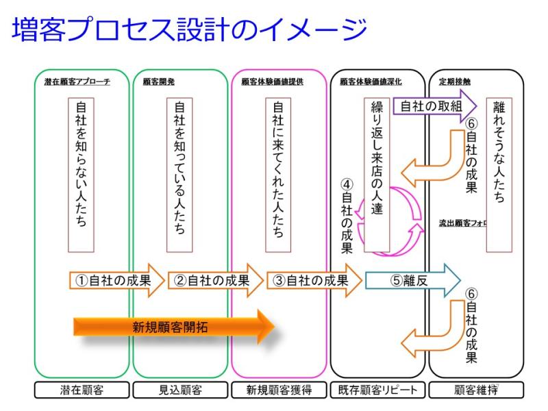 大きな流れと店舗の営業施策としてチェックして欲しいのは、『増客プロセス』『戦略シナリオ』となります。(何度もコラムに添付している図になりますが)
